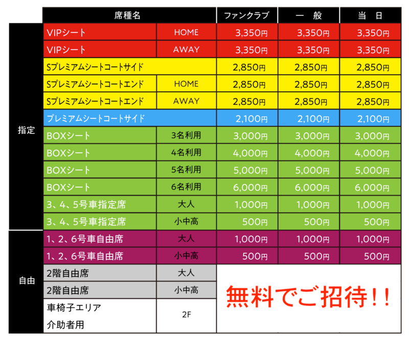 2階自由席全席ご招待!!