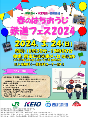 東日本旅客鉄道株式会社 八王子支社主催のイベント「JR東日本×京王電鉄×西武鉄道 春のはちおうじ鉄道フェス2024」に参加をさせていただくこととなりましたので、お知らせいたします。