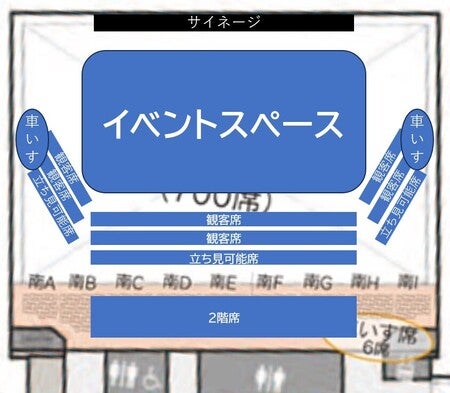 1階3列目は、ひな壇の設置がないため立ち見観戦可能席となっております。