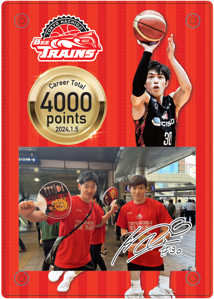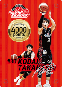今季東京八王子ビートレインズでは、記録に残っている生涯得点を1,000点単位で表彰いたします。現在確定している記録は、第13節AWAY横浜エクセレンス戦で達成した髙橋 幸大 選手の4,000得点記録です。
