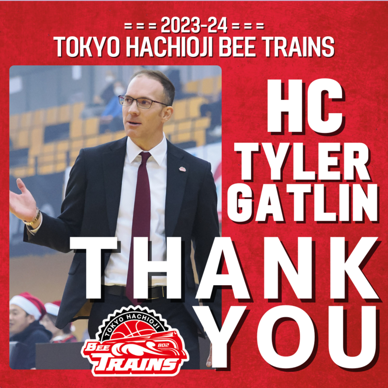 この度、東京八王子ビートレインズではタイラー・ガトリンヘッドコーチとの契約が2024年4月30日(火)をもちまして満了となることをお知らせいたします。