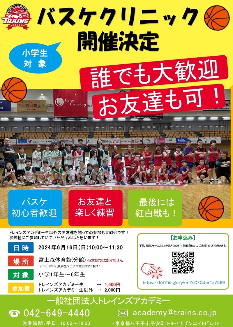 【6月16日(日)トレインズアカデミーバスケクリニック開催決定!】