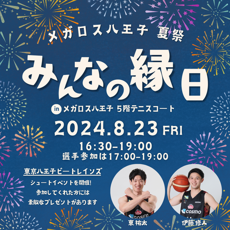 この度、8月23日(金)にメガロス八王子5Fテニスコートにて開催する 野村不動産ライフ&スポーツ株式会社 メガロス八王子様 主催の『メガロス八王子 夏祭り~みんなの縁日~』にてシュートイベントで参加することが決まりましたのでお知らせいたします。