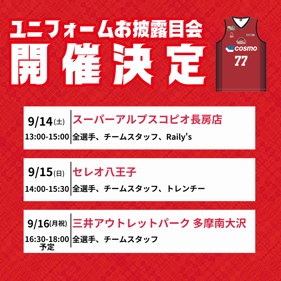 ■時間:13:00~15:00(ユニフォームお披露目会)