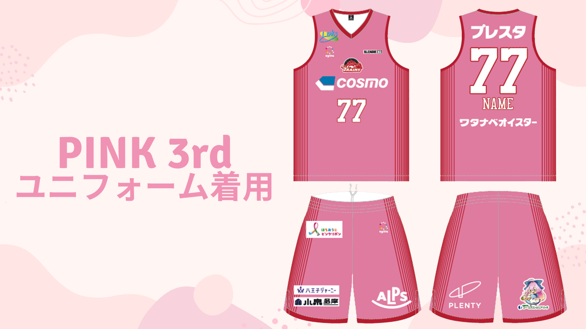 医療法人社団玉栄会 東京天使病院様、はちおうじピンクリボン様が冠スポンサーとなり、選手はピンクユニフォームを着用して試合に臨みます!