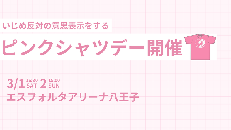 ピンクシャツデーキャンペーンは、ピンクシャツを着たりピンク色のものを身につけたりすることで「いじめ反対」の意思を示す取り組みです。おもに毎年2月の最終水曜日に世界各国で実施されており、八王子ビートレインズでは2022-23シーズンから継続して実施しています。
