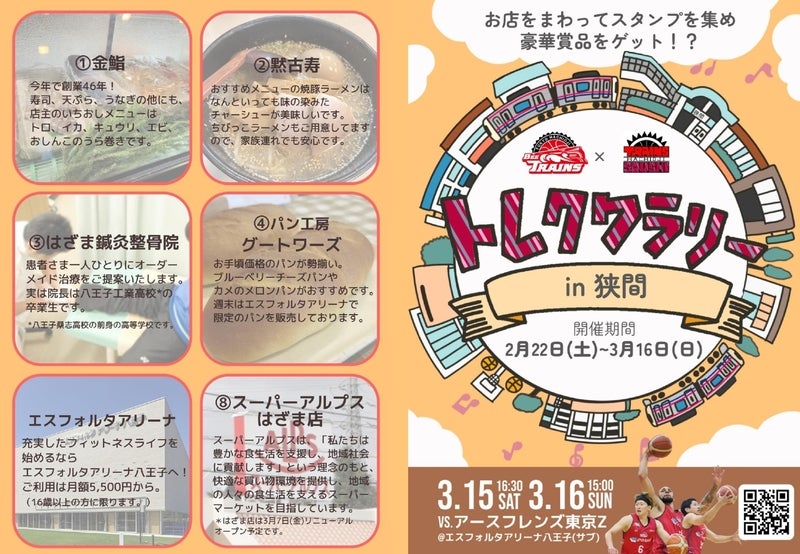 下記の日程において東京八王子ビートレインズ×八王子桑志高校コラボレーションスタンプラリー「トレクワラリー」を開催いたします。