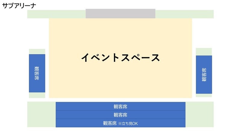 1階3列目は、ひな壇の設置がないため立ち見観戦可能席となっております。