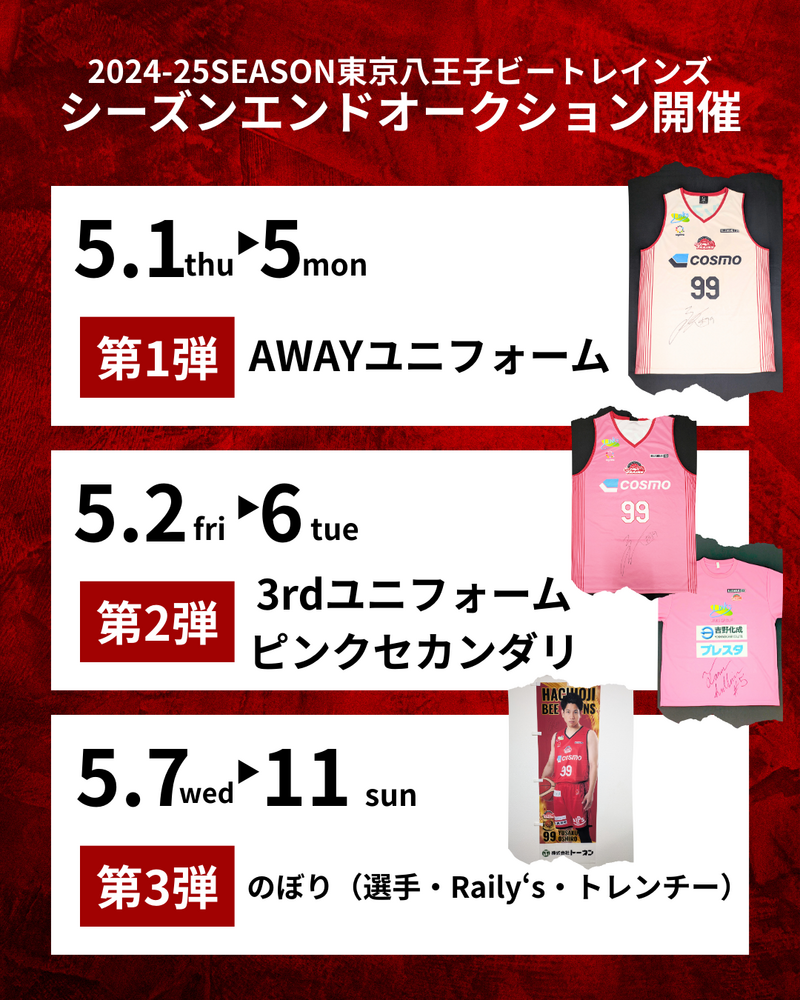 この度八王子ビートレインズでは選手直筆サイン入りアイテムのオークションを開催することが決定いたしました。