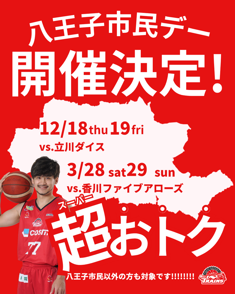 いつも八王子ビートレインズの応援、ありがとうございます。この度、2025-26シーズンも八王子市民デーを開催することが決定いたしましたので、お知らせいたします。