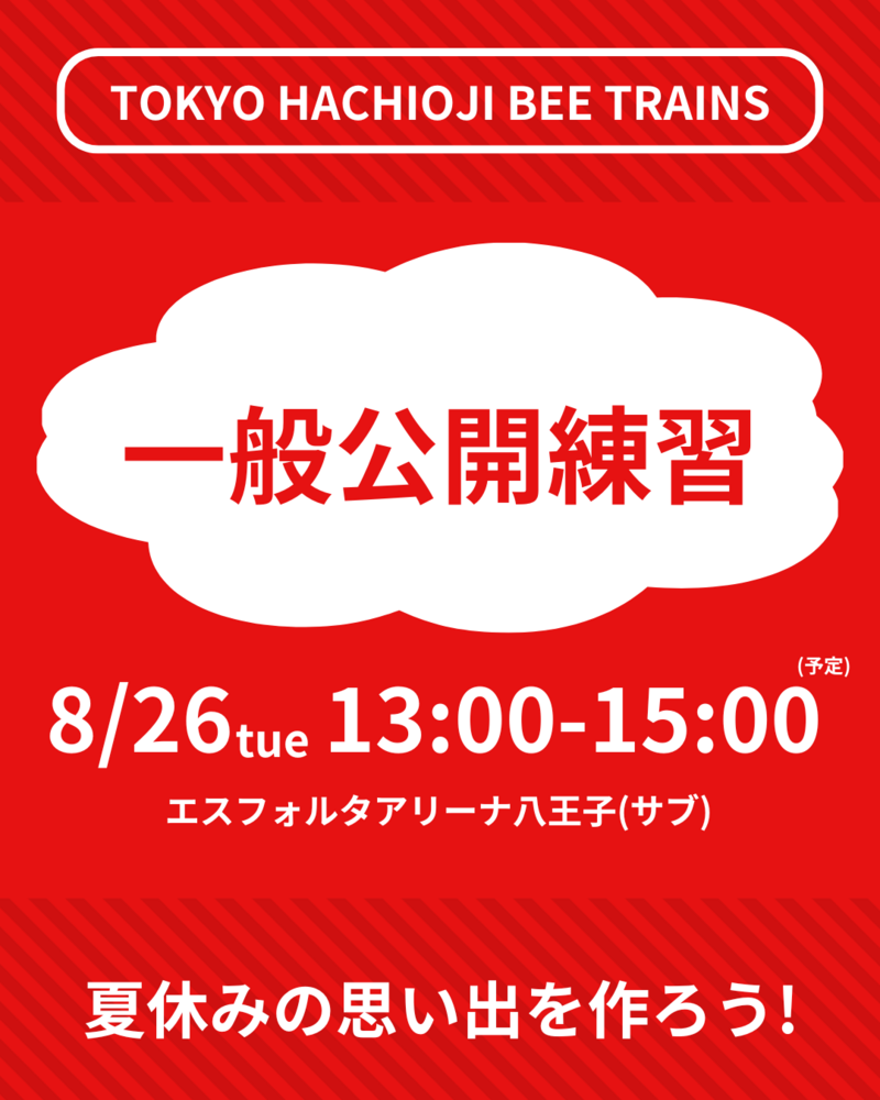このたび東京八王子ビートレインズでは、2025年8月26日(火)に公開練習を実施することが決定いたしましたので、お知らせいたします。