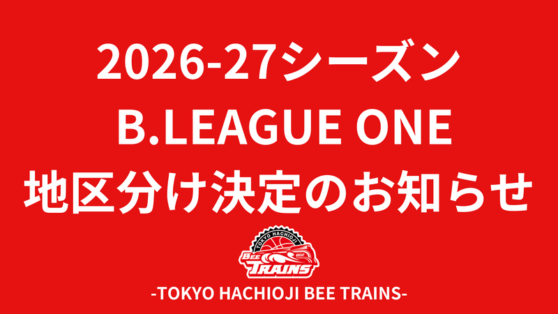 Bリーグより2026-27シーズン「B.LEAGUE ONE」の地区分けが発表されましたのでお知らせいたします。