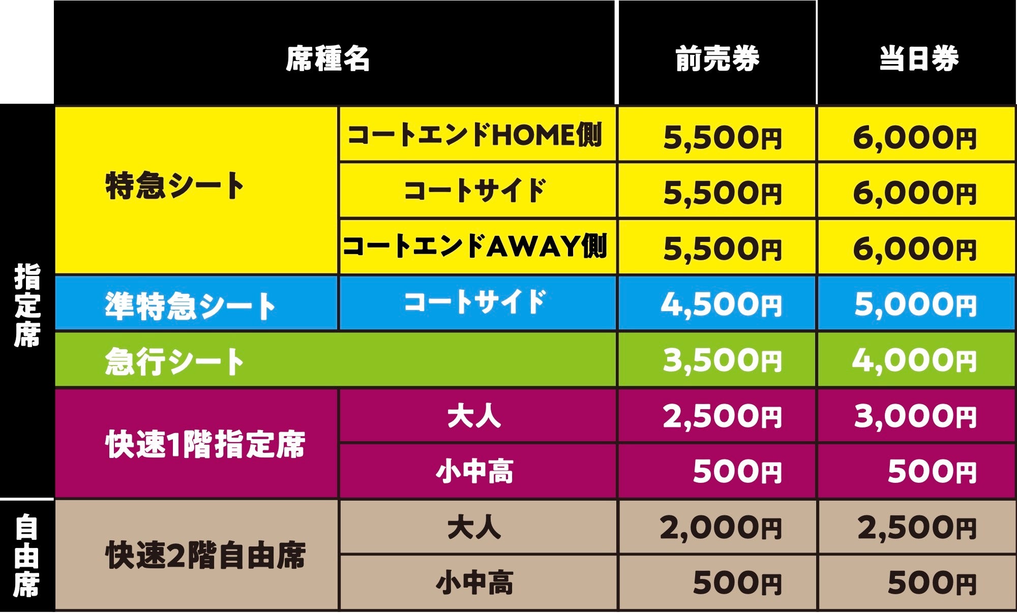 未就学児について・・・未就学児は保護者1名につき、1名様まで膝上観戦が可能です。座席が必要な場合は「小中高価格」のチケットをお求めください。