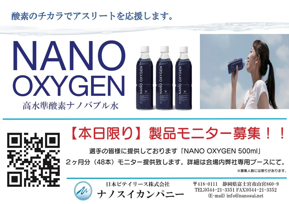 会場では特設ブースにて、「NANO OXYGEN」のモニターを募集しますので、皆さんぜひ奮ってご応募ください。