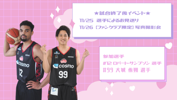 11月26日(土)の試合終了後にファンクラブ会員限定写真撮影会を実施いたします。