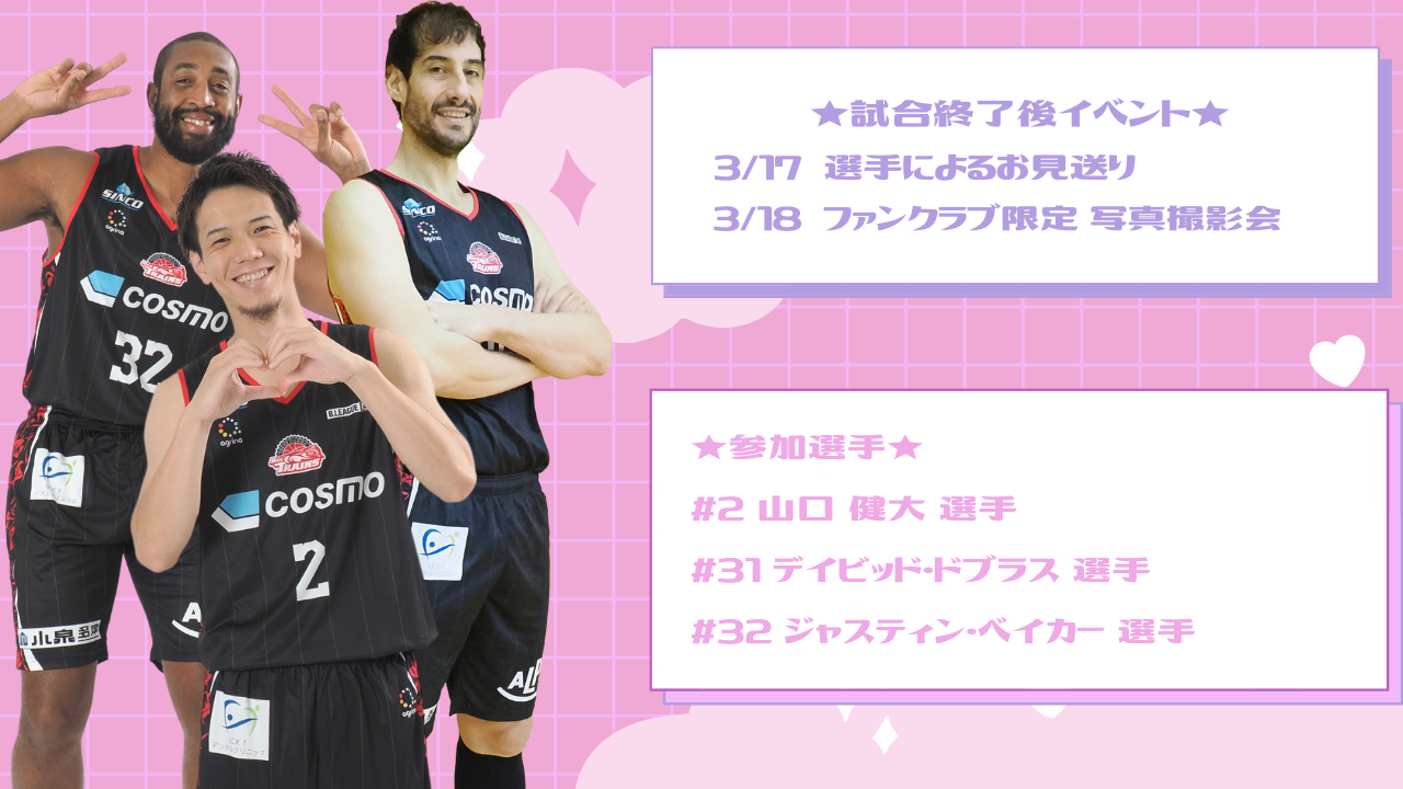3月17日(金)の試合終了後、ご来場いただいた皆さまに感謝の気持ちを込めて選手がお見送りを行います。