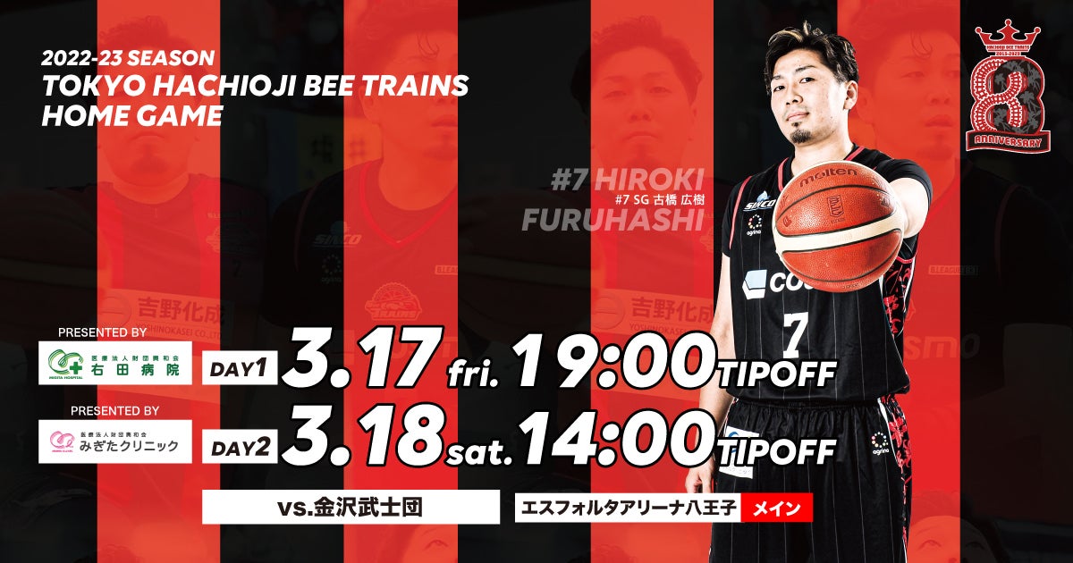 【試合情報】3月17日(金)・18日(土) vs.金沢武士団