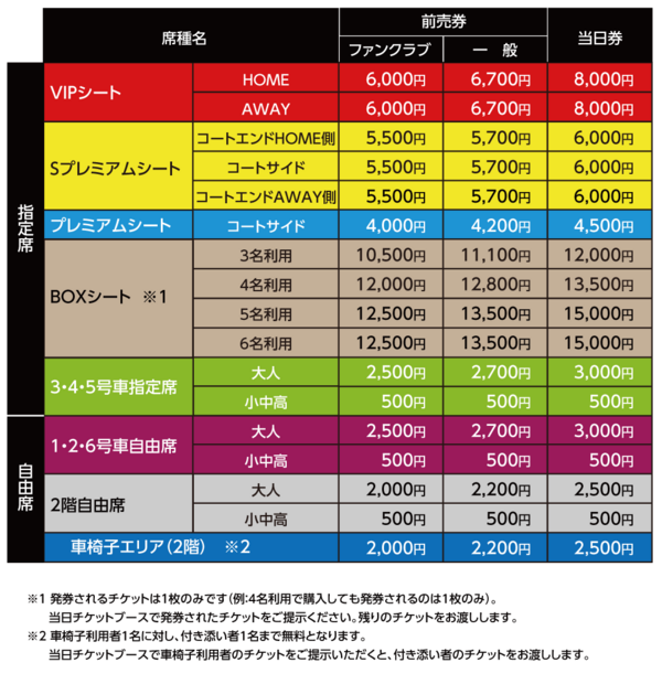 ※チケット販売状況により、1号車自由席コートサイドとコートエンドの間の席を設置しない場合がありますので、あらかじめご了承ください。