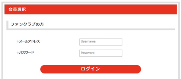 メールアドレスはファンクラブ会員情報に登録されているメールアドレスをご入力ください。