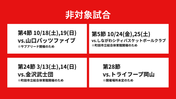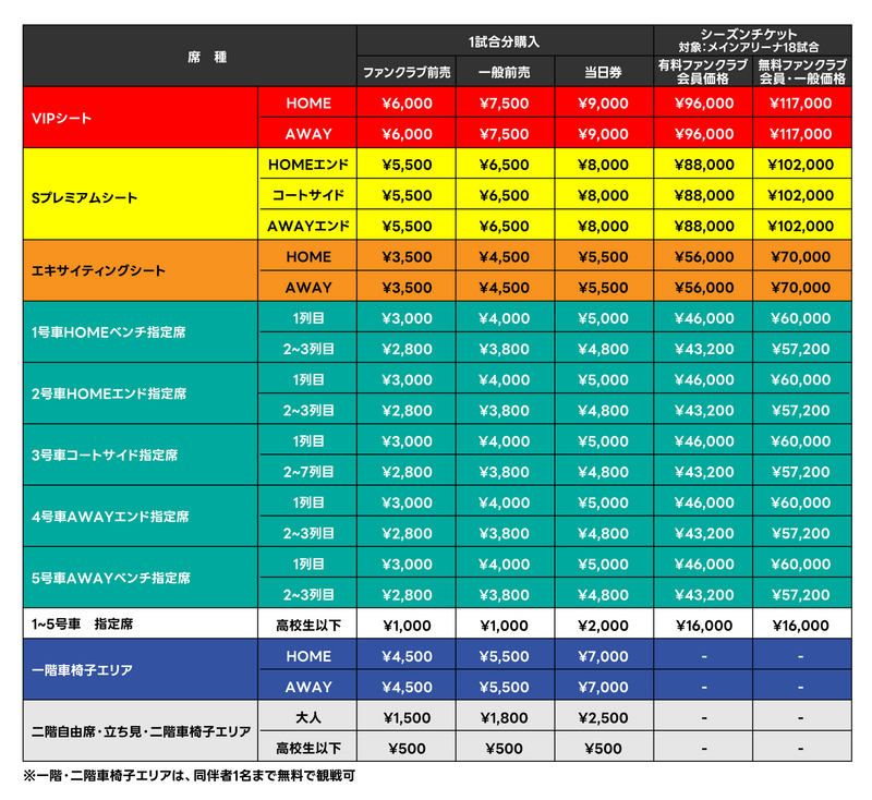 ※第28節 トライフープ岡山戦が「エスフォルタアリーナ メインアリーナ」にて開催される場合、シーズンチケットをご購入者向けに、ご自身が購入された座席を優先購入できる期間をご案内する予定です。